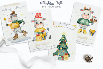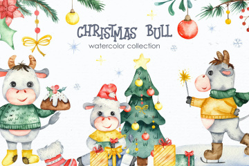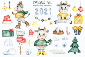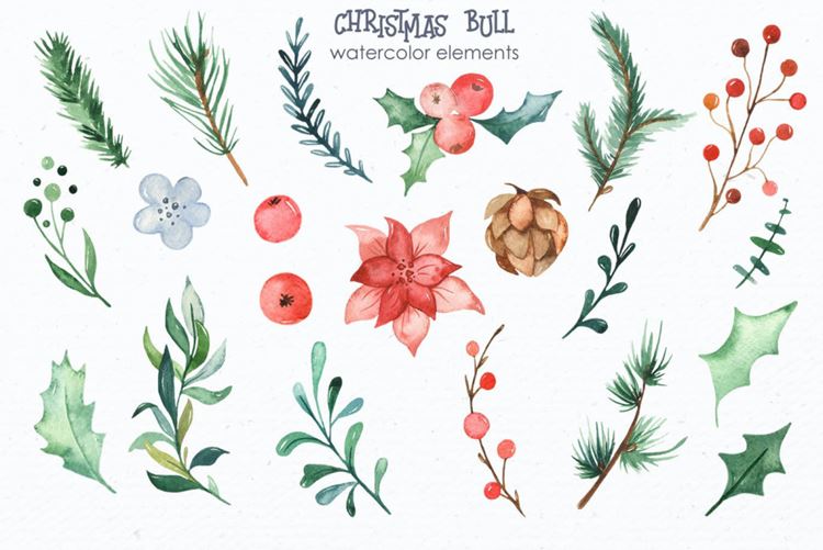 手绘水彩风格的新年圣诞节元素插画大集合-JPG,PNG,PS