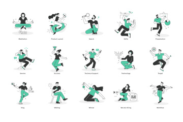 30个流行的商业和技术场景UI矢量插画插图集合-EPS,AI,JPG,PNG,SVG,30个受欢迎的场景和故事。Web,应用程序和图形设计的矢量插图。