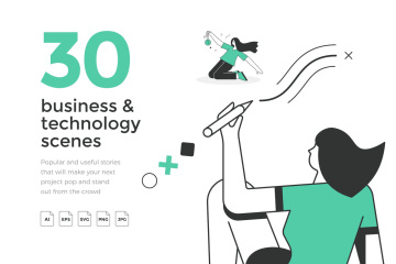 30个流行的商业和技术场景UI矢量插画插图集合-EPS,AI