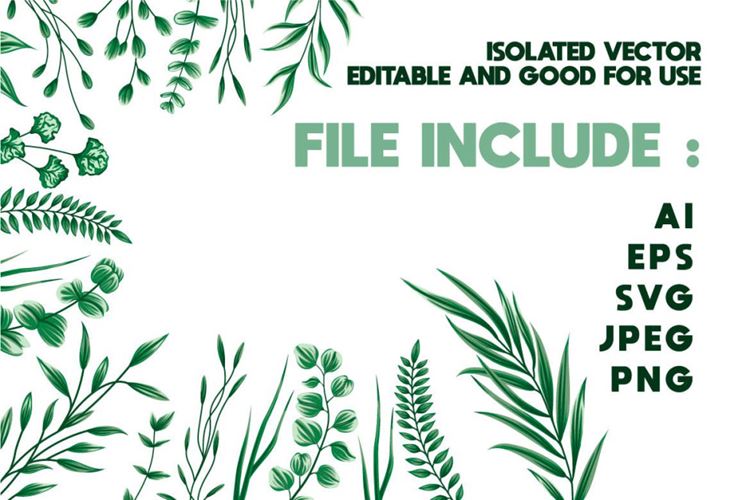 图穷联素材库 » 20个简约优雅植物树叶绿叶矢量插画集合-AI,EPS,JPG