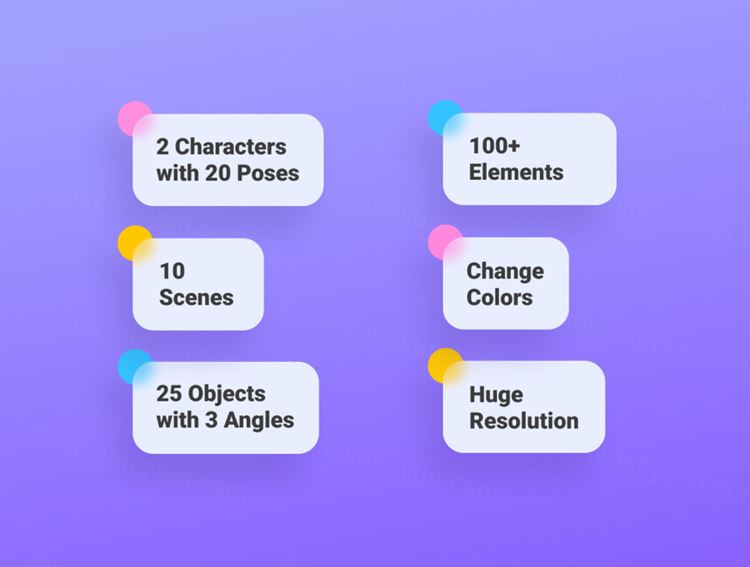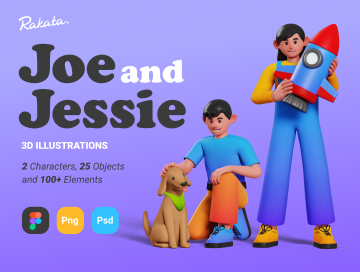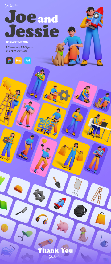 Joe和Jessie 3D插图是2个角色与100多个元素的插图包。此插图是用渐变色制作的,使其看起来更具吸引力。您可以更改颜色!