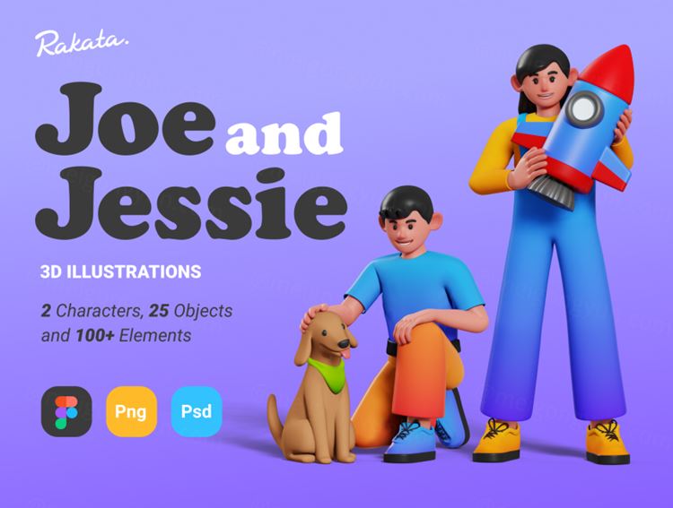 卡通3D立体插图插画素材合集包 Joe and Jessie