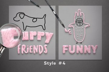 这套包括花式动物皮毛。使用“动作”,可以获得丰满蓬松的皮毛效果。选择一个动作,然后将其播放到图层。用刷子在图层上添加创意,也许还会带来一些恶作剧。您只需要按照说明在Photoshop中安装所有组件。它适用于文本和图形。但是请记住,皮毛蓬松,图像不应太小或有许多小细节。您也可以单独使用画笔,或在毛发层上添加有趣的毛发元素。