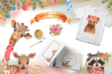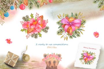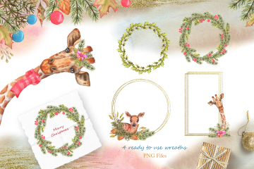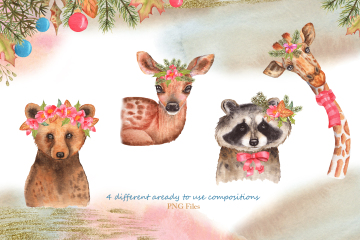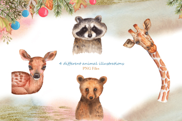 图穷联素材库 » 冬季动物圣诞节装饰元素水彩插图PNG素材 Winter Fr
