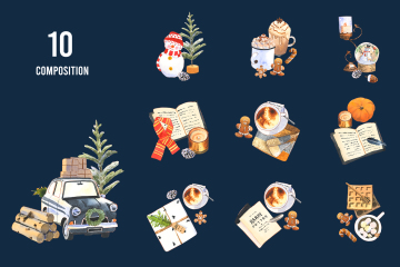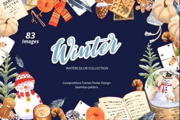 图穷联素材库 » 冬季雪天房屋日常生活装饰元素水彩集插图素材 Winter H
