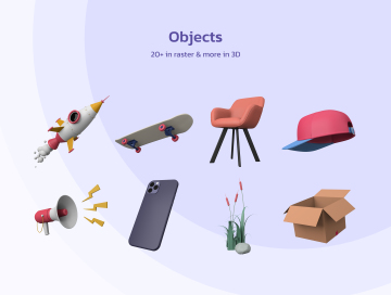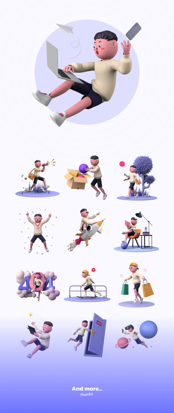 图穷联素材库 » 有趣味性标志性特征的3D插画插图素材包 OUUU!!! 3D