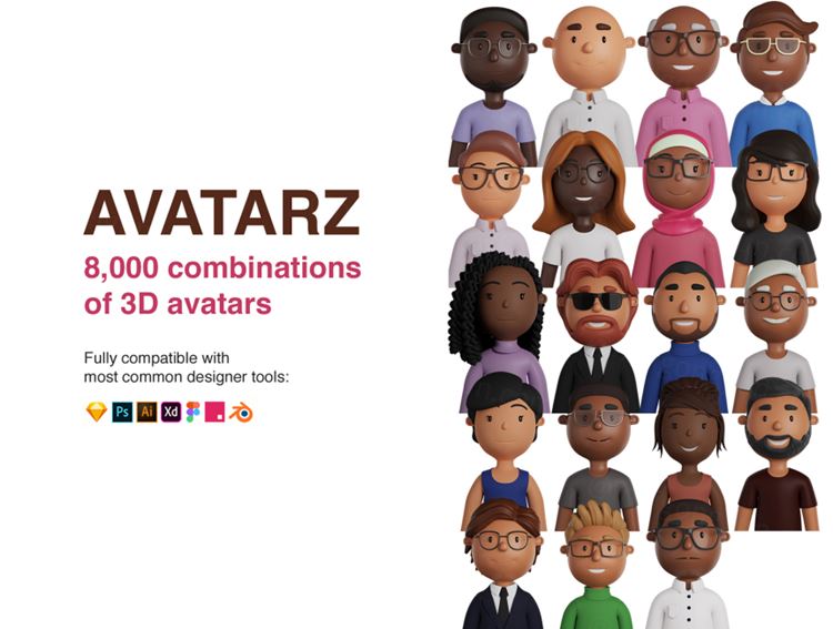AVATARZ是一个可爱的3D库,其中包含适用于您任何项目的各种化身。您可以将它们用于产品中或用于营销目的(社交媒体帖子,登录页面,博客,新闻稿等)。或者,如果您愿意-供您个人使用。