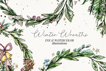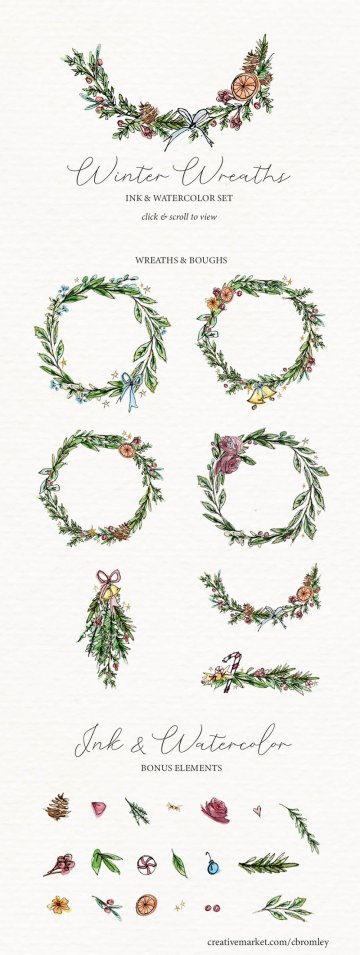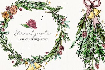 这个精美的图形集合具有手绘插图和宽松的水彩画设计。这套套装包括可爱的墨水和水彩花环以及树枝,非常适合为您的假期创作增添简单典雅而质朴的气息。