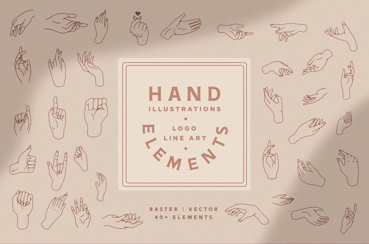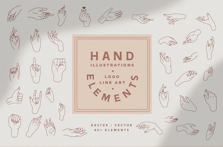 优雅的手绘女性线稿手势矢量插画素材 Hand Vector