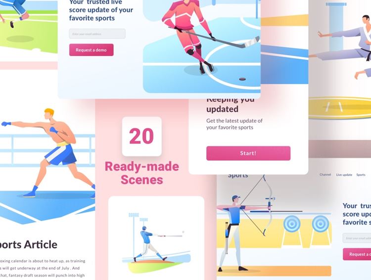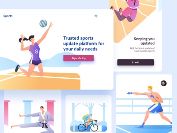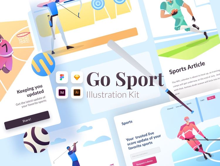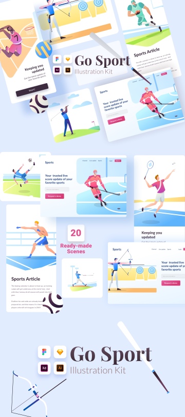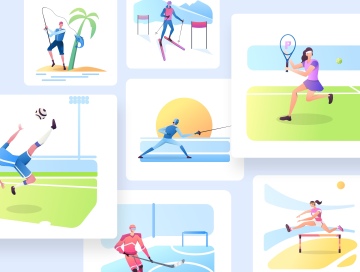 图穷联素材库 » 扁平滑雪射箭拳击橄榄球等体育运动项目场景插画素材 Go Sp