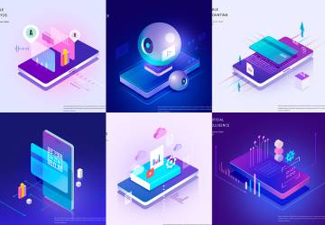图穷联素材库 » 12款2.5D等距设计风格先进网络科技生活矢量插画素材 Industry