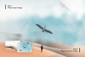 只需放置您的基本图像,然后放置第二个图像,然后从随附的遮罩之一中进行选择,即可获得所需的混合效果。