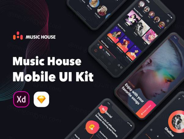音乐之家电音爱好者社交APP网站设计界面UI工具包 Music House Mo