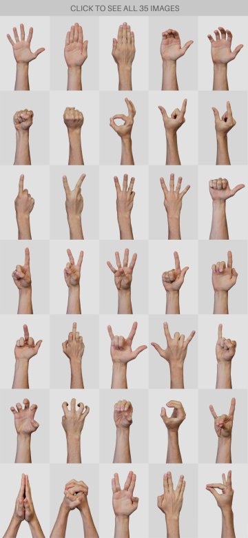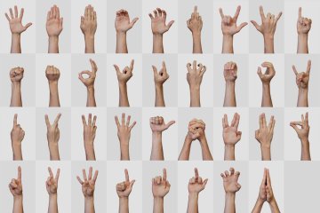 图穷联素材库 » 35种独特的手势数数无声沟通触摸动作高清PNG免扣素材 Ha