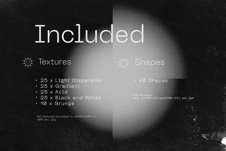 Grafica包含110种充满活力的抽象纹理和40种形状的大量包装,可用于各种设计目的。