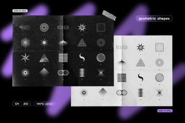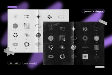 240个PSD文件– 100个几何形状+ 20条分隔线(黑色和白色)。组织良好且易于使用的Adobe Photoshop文件,具有与分辨率无关的矢量形状图层,可立即放入您的设计中。