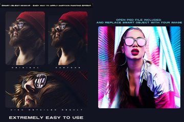 动画级卡通油画照片特效处理真实绘画效果PSD模板 Carto