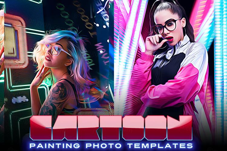 图穷联素材库 » 动画级卡通油画照片特效处理真实绘画效果PSD模板 Carto