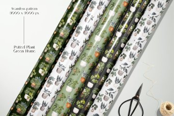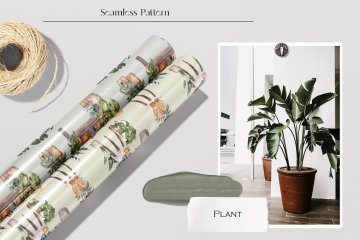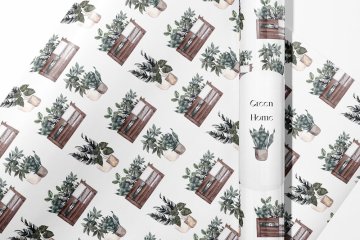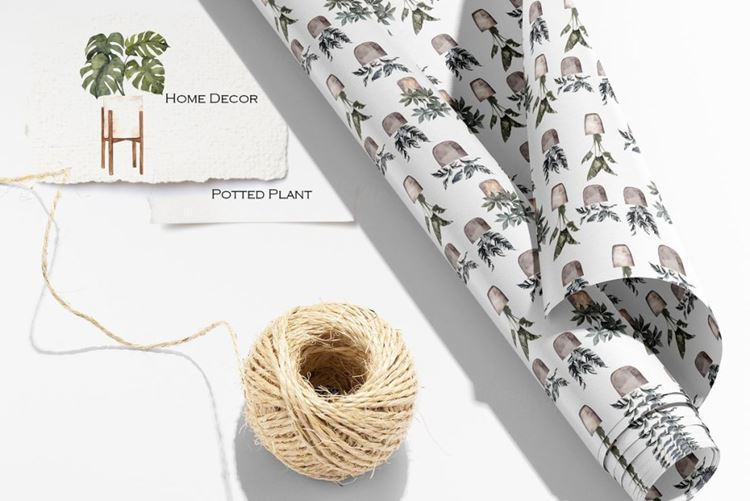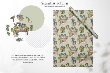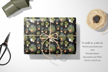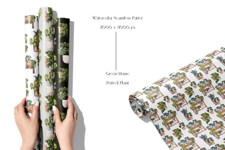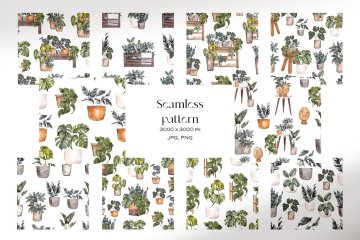 图穷联素材库 » 水彩手绘龟背竹盆栽植物无缝拼接图案 Potted Plant