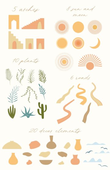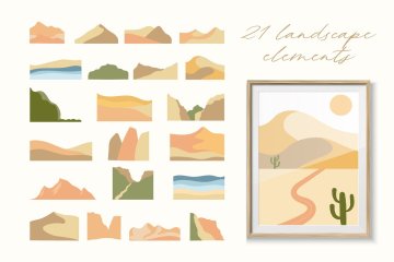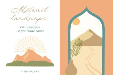 图穷联素材库 » 抽象山川河流星辰手绘简约插画素材设计套件 Abstract
