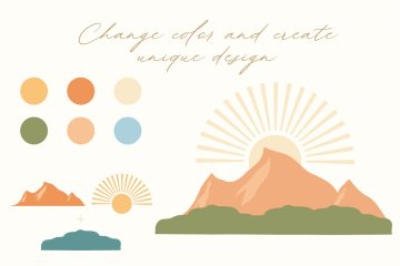抽象山川河流星辰手绘简约插画素材设计套件 Abstract