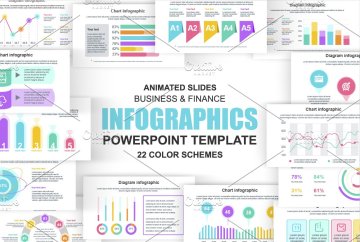 商业和金融信息图形数据可视化PowerPoint动画幻灯片设计模板。不同的图表,图表,工作流,流程图,时间轴,方案,图形设计模板。幻灯片幻灯片信息图形和图表设置。