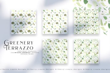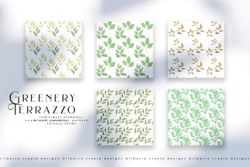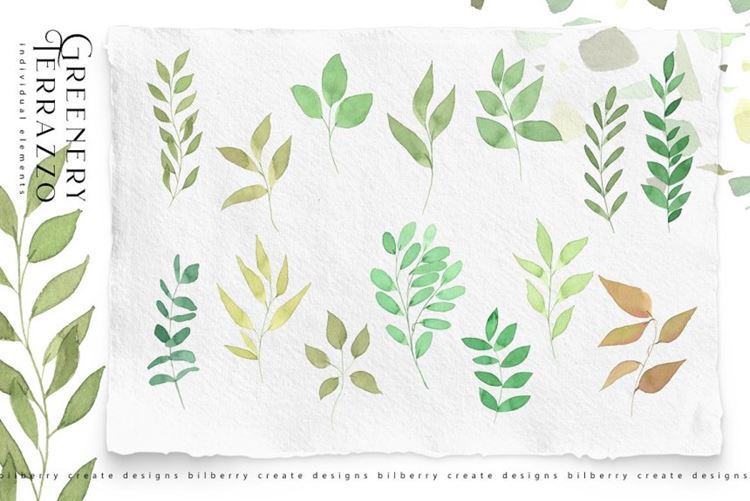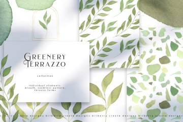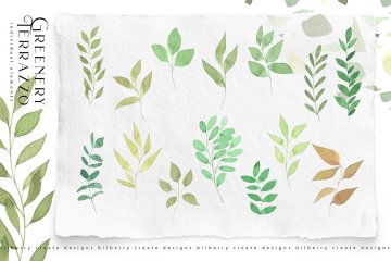 水彩绿化水磨石新设计设置填充单个水彩元素,水彩绿色花环,无缝模式,水磨石形式。确保单击图像以查看所有元素。