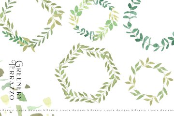 图穷联素材库 » 波西米亚手绘水彩绿色花环花圈绿叶植物剪贴画合辑 Greene