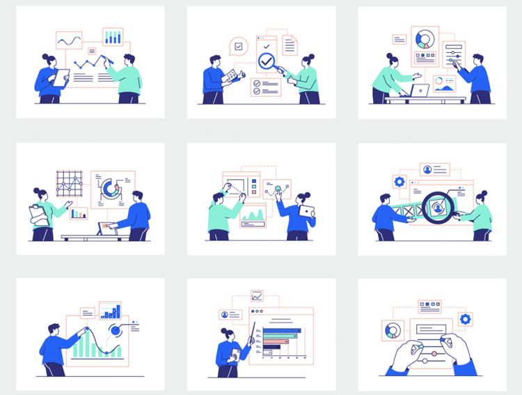 图穷联素材库 » 业务分析数据统计Web插画素材 BLAU Business