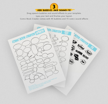 图穷联素材库 » 漫画书故事线气泡创作者套装PSD模板 Comic Book