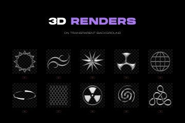 PNG文件– 100个高分辨率5000×5000px 3D渲染,在透明背景上具有光滑,详细的chrome外观。
