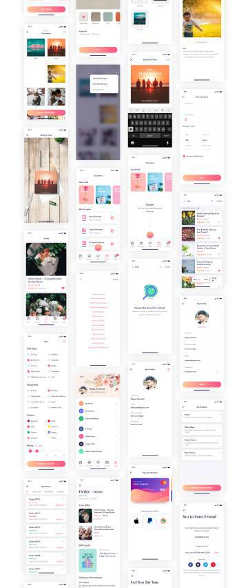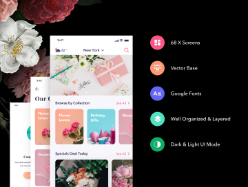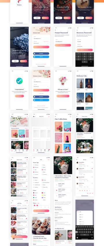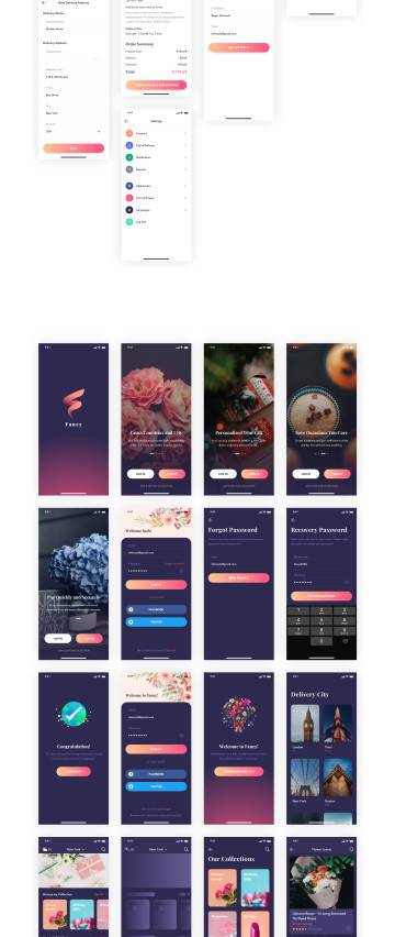 图穷联素材库 » 鲜花礼品预订送货上门移动程序界面UI工具包 Fancy App UI Kit