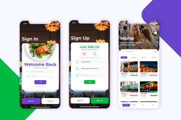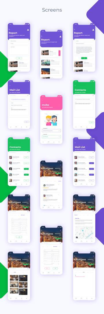 用于餐厅桌预订应用程序的Adobe Xd app UI工具包,具有良好的整体设计和配色方案。