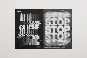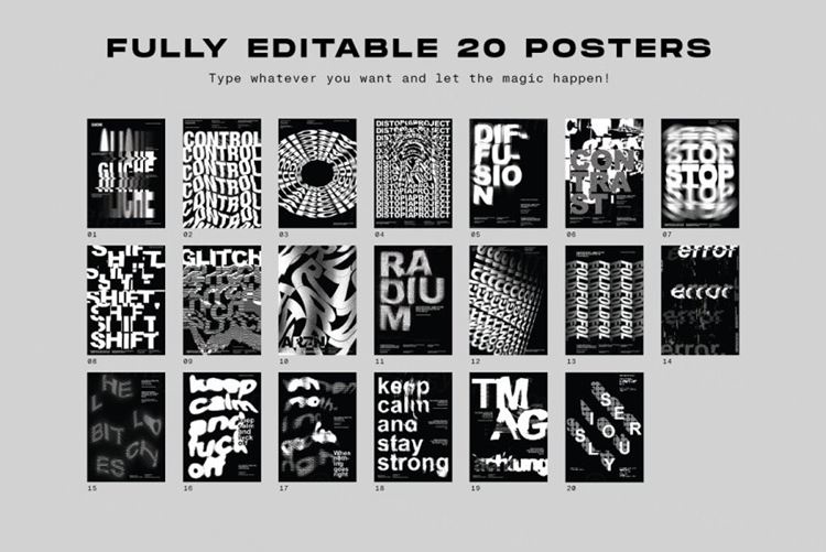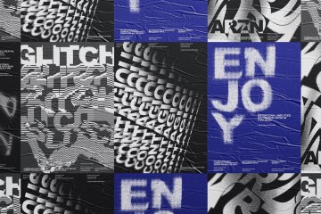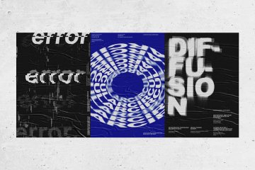 抽象弥散消失特效扭曲效果噪点故障字体设计模板 Typogra