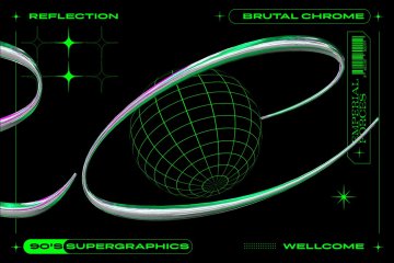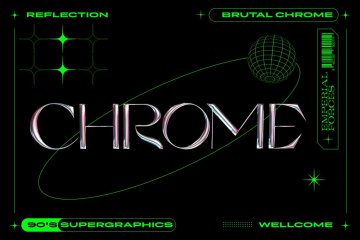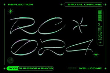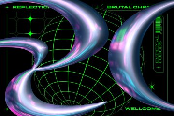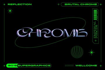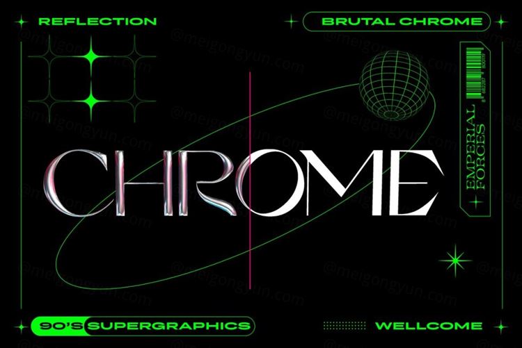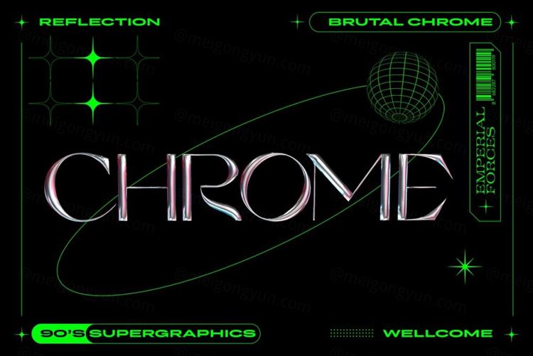图穷联素材库 » 复古未来主义酸性艺术金属光泽镀铬文字效果设计PSD模板 Br