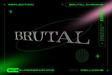 Brutal Chrome 文字效果是一种复古未来主义的文字效果,非常符合新时代的设计趋势。使用 4 种不同风格的反射,您可以创建令人惊叹的复古未来主义设计。PSD文件中还包含图形元素。