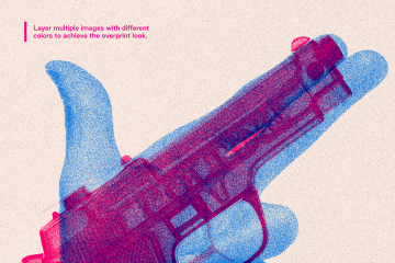 Risoprint 是一个超级简单的过程,它允许您将自己的图像与您选择的颜色和颗粒强度级别相结合,以实现逼真的 risograph 叠印外观。