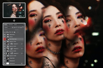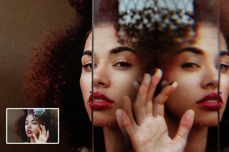 图穷联素材库 » 复古棱镜多重幻影人像照片艺术图片处理特效PS模板素材 Pri