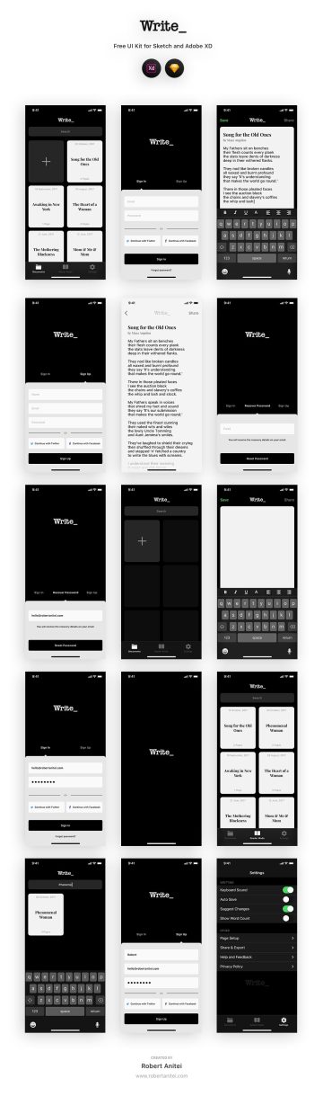 图穷联素材库 » 用于写作的移动界面设计工具包 Writting | Write ui kit 每