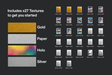 Ink Bleed & Texture 包包含 1 个 Photoshop 主文件,其中包含 27 个单独的纹理,每个文件有 4 种变化。纸、金、银和全息。这些是抽象艺术、海报、专辑插图等的理想选择——这个列表是无止境的。