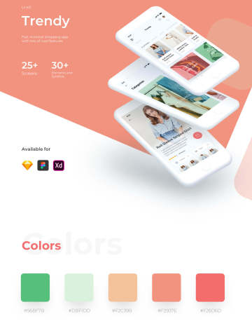 图穷联素材库 » 配色时尚电商购物移动APP程序界面UI工具包 Trendy Shopping e