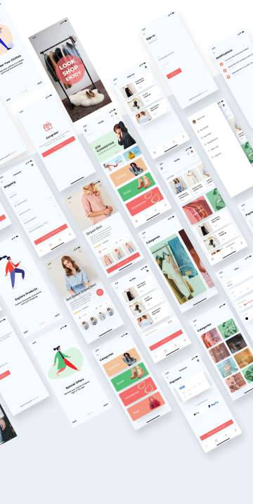 配色时尚电商购物移动APP程序界面UI工具包 Trendy Shopping e