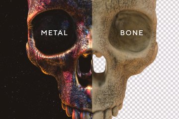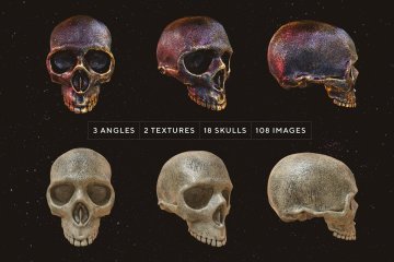 Skulls 是一个由 108 个高度详细的 3D 头骨图像组成的折衷集。每个头骨都以三种不同的视图制作,具有两种逼真的骨骼和金属纹理选项。每个图像都以透明的 PNG 文件形式提供,以便于集成和定制。