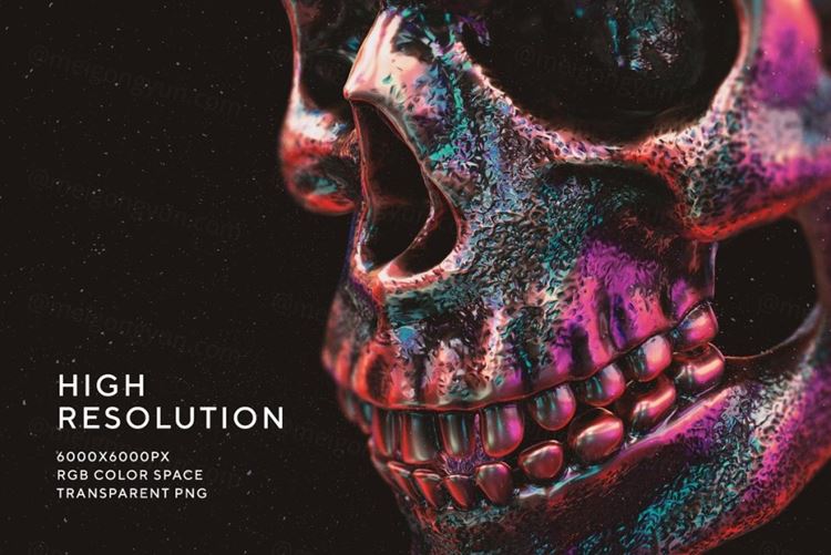 图穷联素材库 » 108张超高精度酷炫3D渲染金属质感骷髅头盖骨PNG免抠图