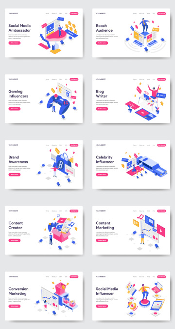 图穷联素材库 » 各大社会行业公众影响力矢量概念插图素材(第一辑)Social Media Inf