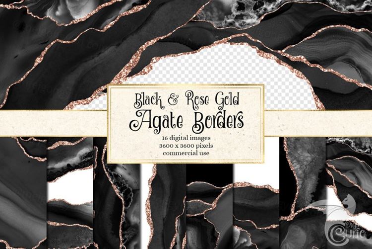 高分辨率黑色玫瑰金边缘玛瑙闪光边框素材 Black Ros