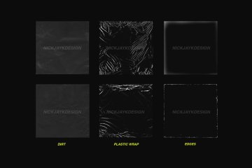 一包 33 种叠加纹理,非常适合专辑封面或巡演海报。包括塑料包装覆盖层、粗糙边缘、污垢纹理等等!