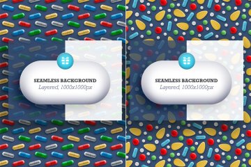 两个不同的分层1000x1000px无缝背景图片也包括在内。一种是彩色胶囊,另一种是药片。