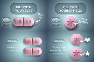 带文字的药丸:通过更改智能对象文字层,在药丸上放置包含2或4个字符的文字。