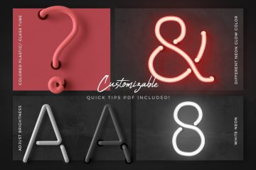 使用此套件创建您自己的霓虹灯标志!它包括大写字母 (AZ) 和从 0 到 9 的数字,以及一个与号、问号和感叹号(有关该套件内容的概述,请参见预览图片)。只需拖放不同的元素即可创建您自己的自定义场景和构图。该工具包非常适合创建横幅、标题、引语……所有元素都以高分辨率 300 DPI 文件的形式提供 - 每个字母高约 2300 像素。其他元素(支撑、框架)更大 - 超过 6000 像素。